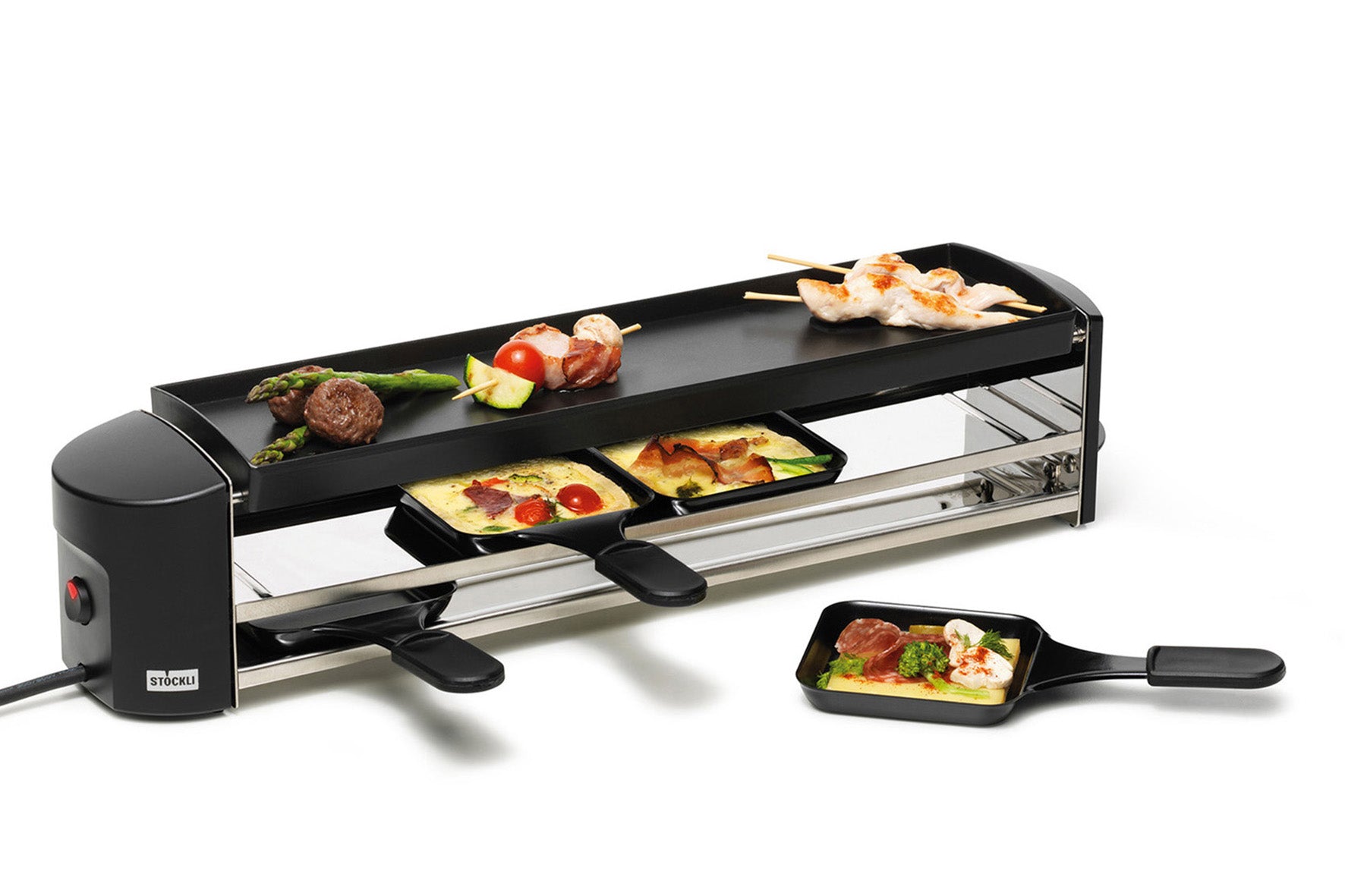- Vier antihaftbeschichtete Pfännchen garantieren fliessenden Käsegenuss bis zum letzten Bissen