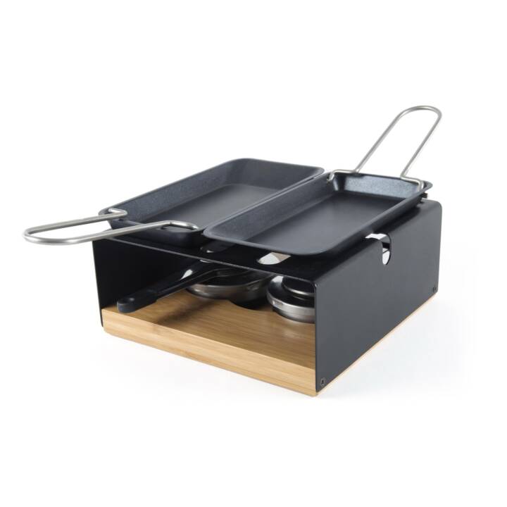 Das Rechaud MultiFun von Stöckli eignet sich hervorragend für die Zubereitung von Raclette sowie von Fondue. Das Rechaud ist mit zwei Pastenbrenner ausgestattet. Es besteht aus einem schwarzen Metallgestell und einer Brennauflage aus Bambusholz, sowie zwei Bratpfännchen.Weitere Informationen
